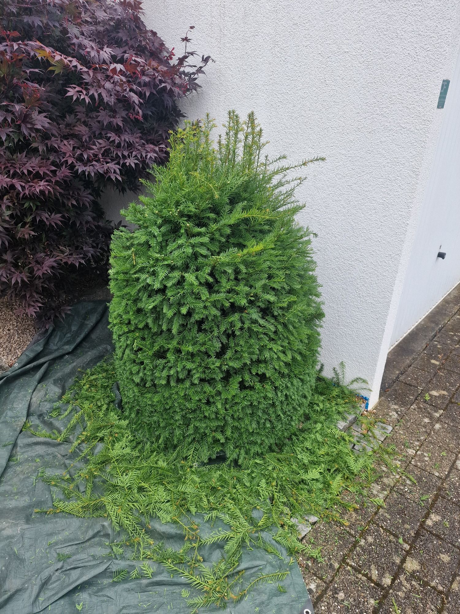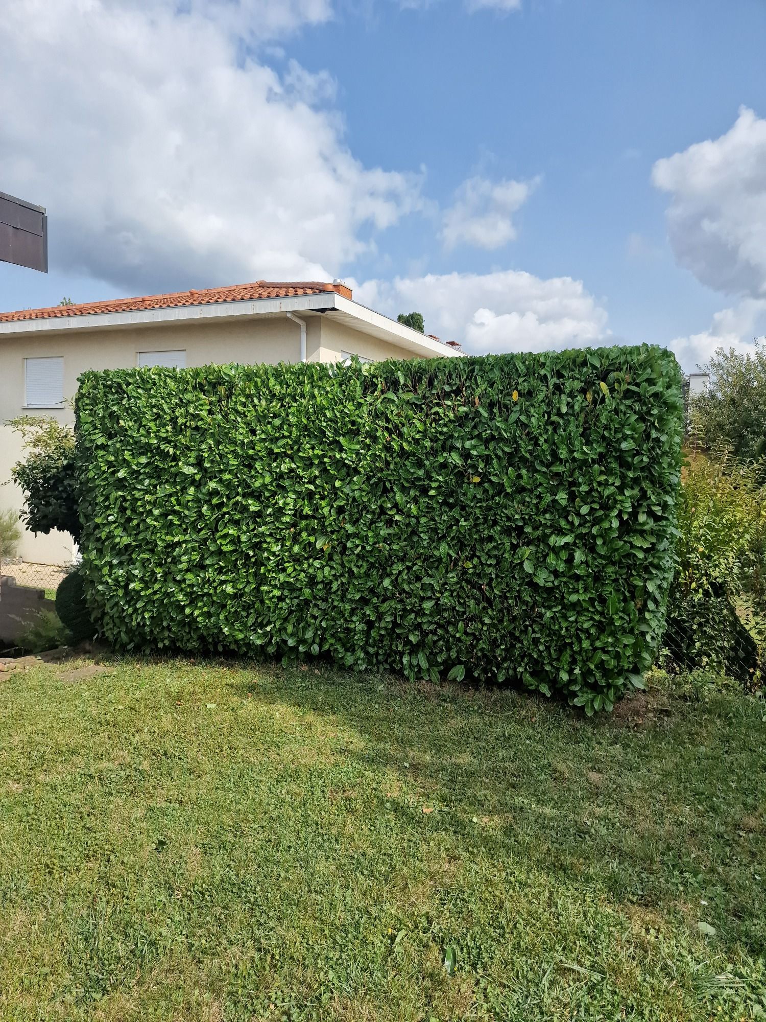 Hier der Herbstschnitt einer langjährigen Kundin aus Bissingen, Kirschlorbeere ist wieder in Form und bereit für den kalten Winter...